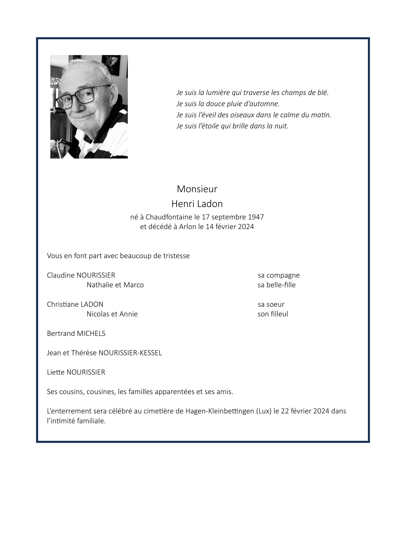 Décédé à Arlon (6700) le mercredi 14 février 2024 à l'âge de 76 ans