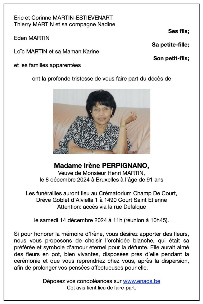 Décédée à Bruxelles (Laeken) (1020) le dimanche 8 décembre 2024 à l'âge de 91 ans