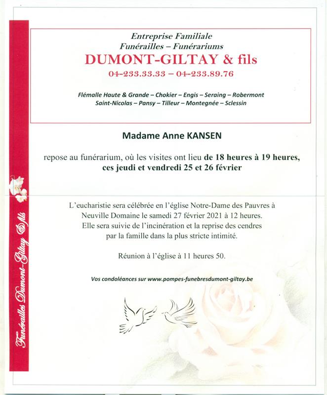 Décédée à Liège (4000) le mercredi 24 février 2021 à l'âge de 38 ans