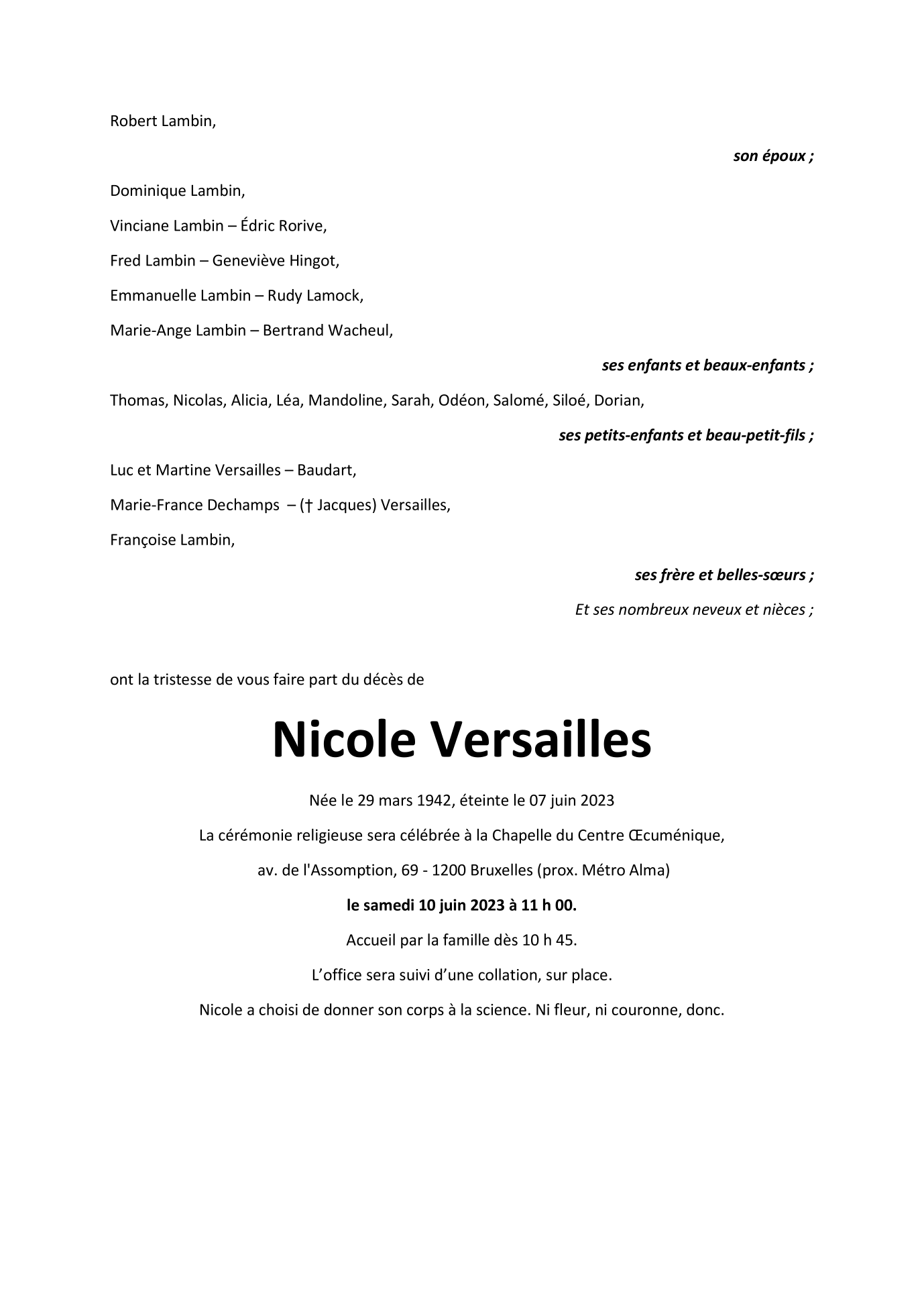 Décédée à Kraainem (1950) le mercredi 7 juin 2023 à l'âge de 81 ans