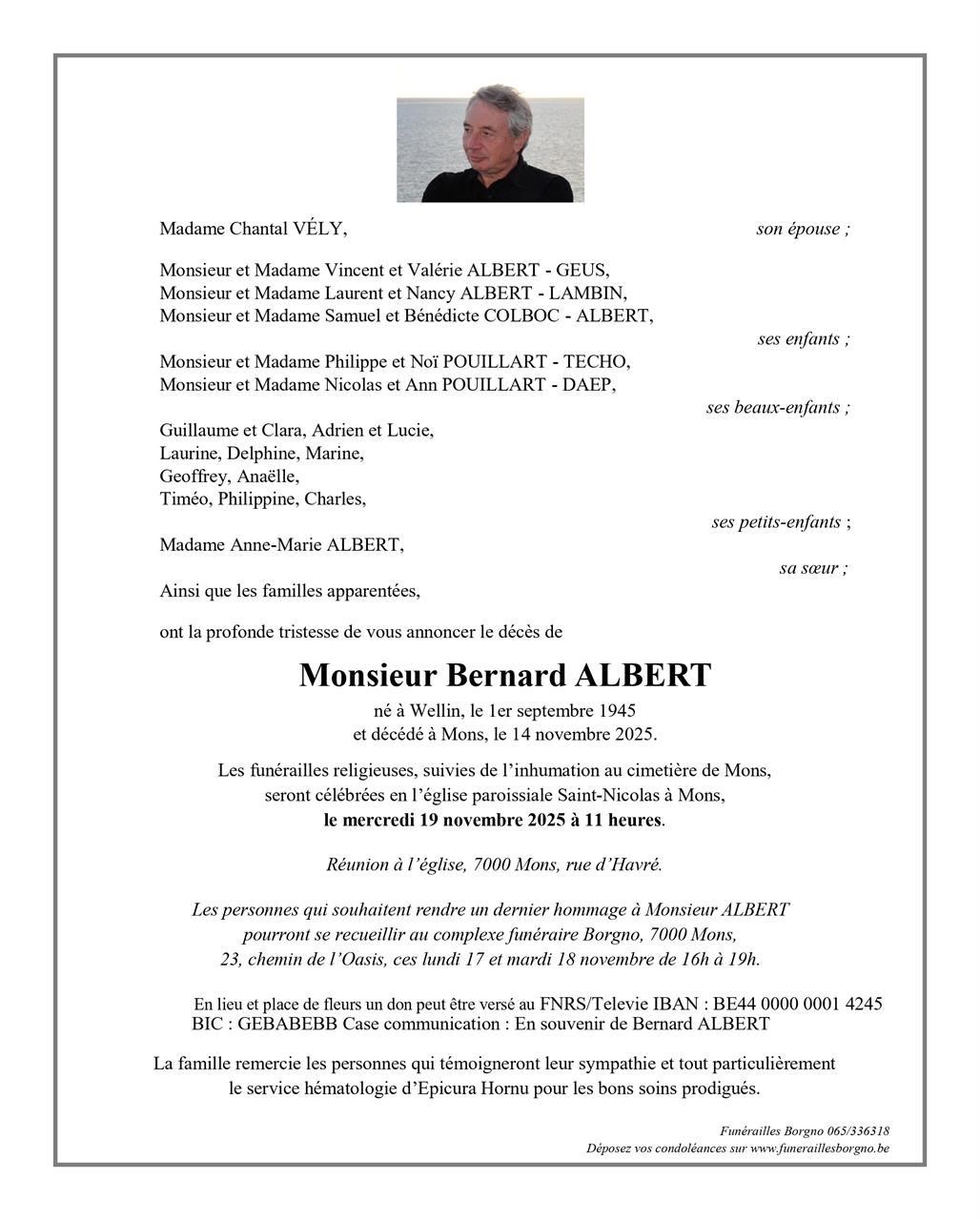 Décédé à Mons (7000) le vendredi 14 novembre 2025 à l'âge de 80 ans